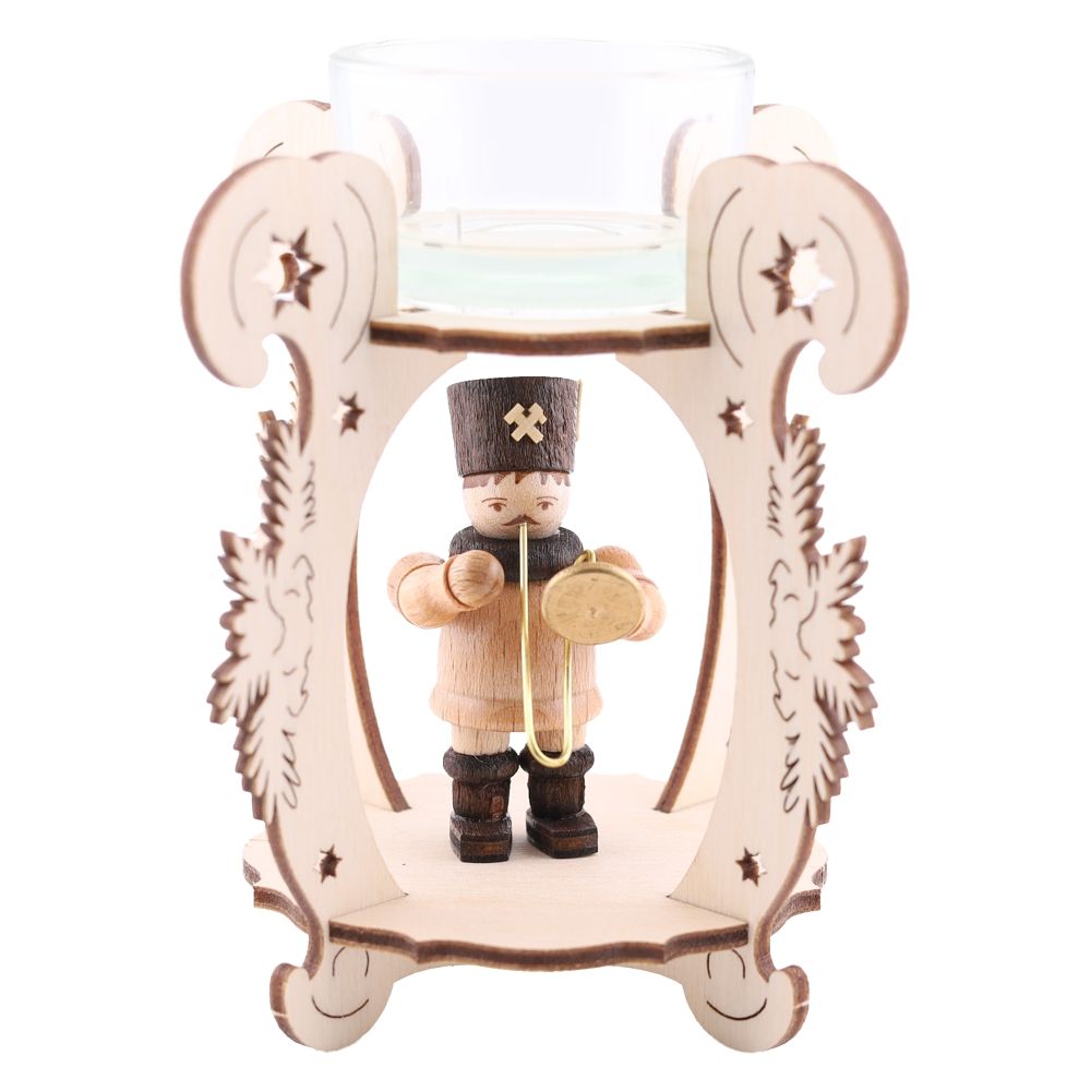 Filigraner Teelichthalter mit gedrechselter Holzfigur