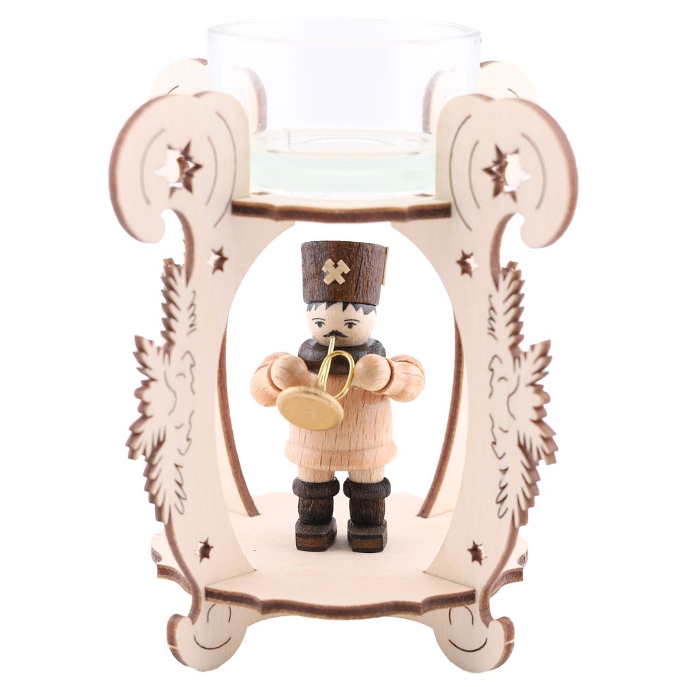 Filigraner Teelichthalter mit gedrechselter Holzfigur