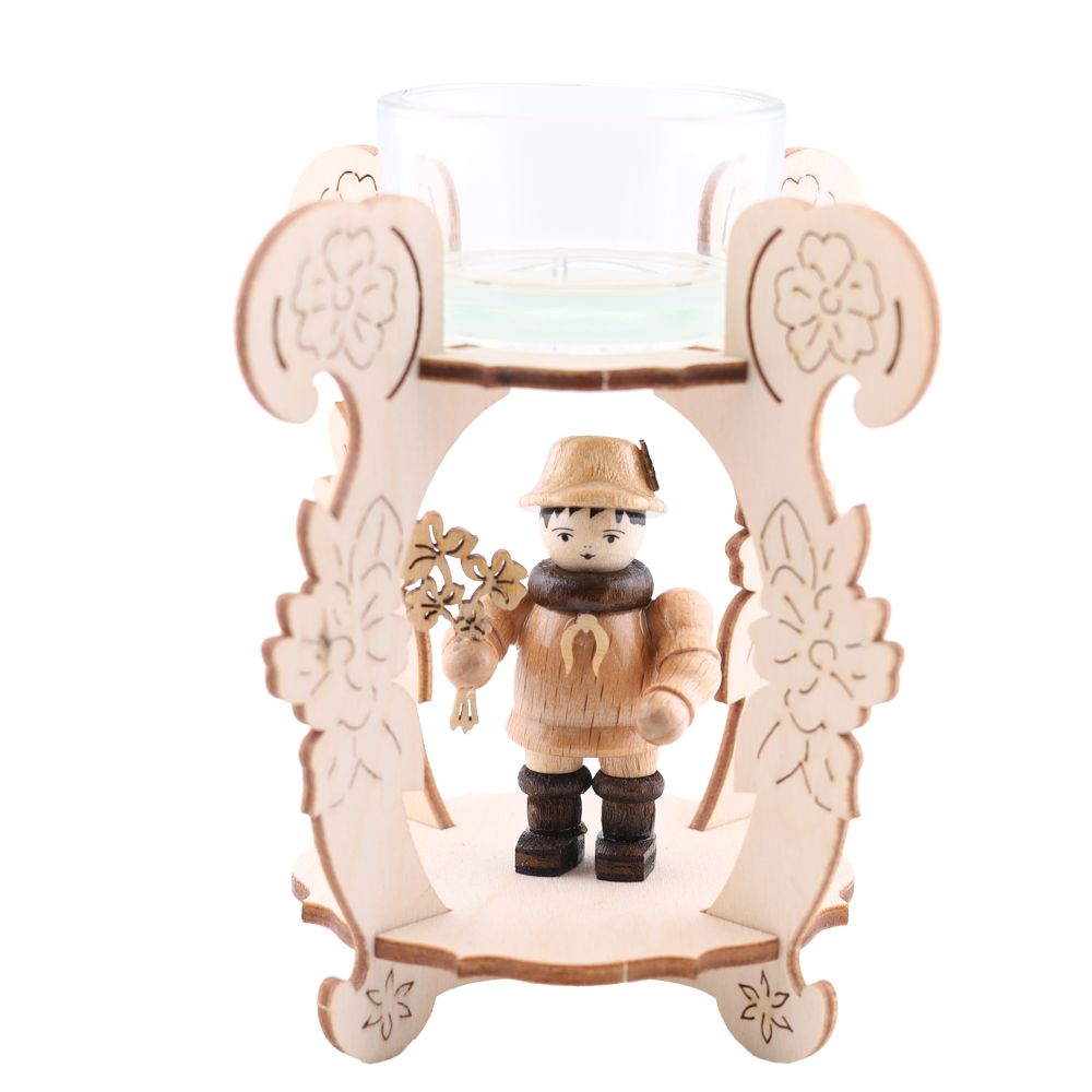Filigraner Teelichthalter mit gedrechselter Holzfigur