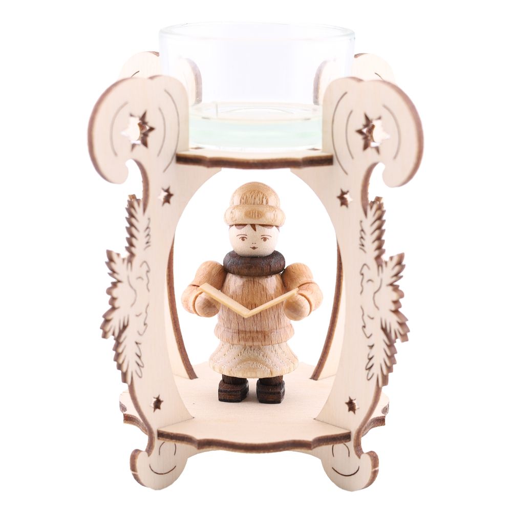 Filigraner Teelichthalter mit gedrechselter Holzfigur
