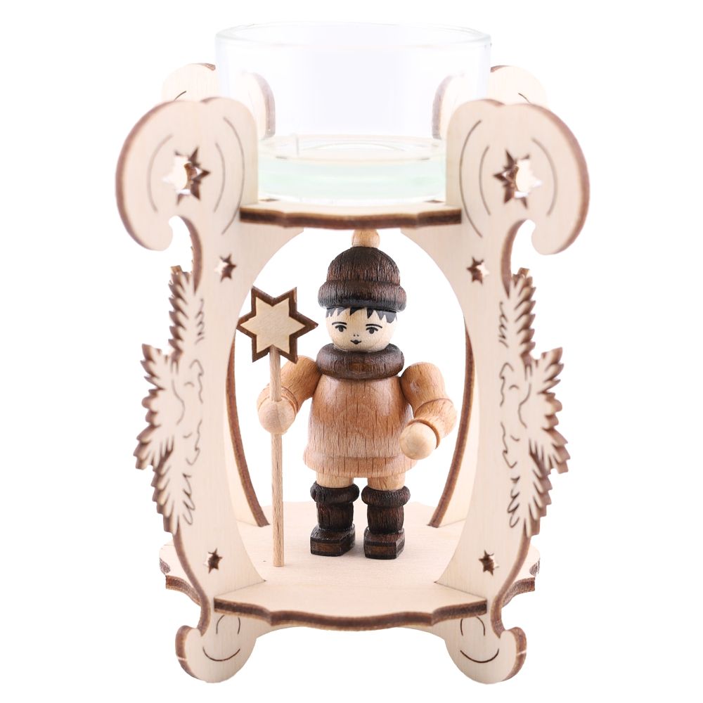 Filigraner Teelichthalter mit gedrechselter Holzfigur