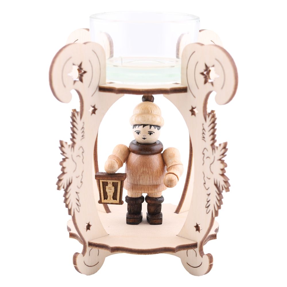 Filigraner Teelichthalter mit gedrechselter Holzfigur