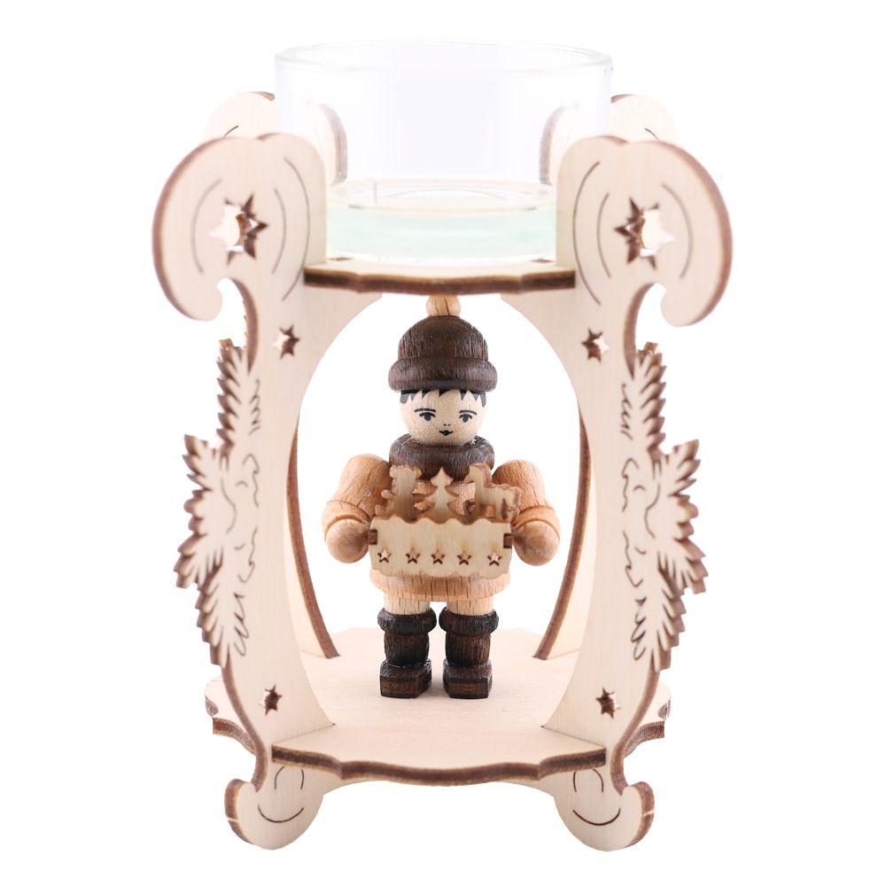 Filigraner Teelichthalter mit gedrechselter Holzfigur