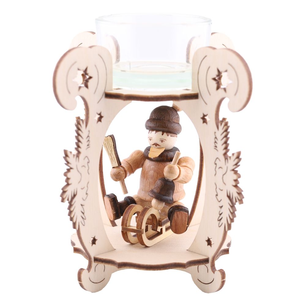 Filigraner Teelichthalter mit gedrechselter Holzfigur